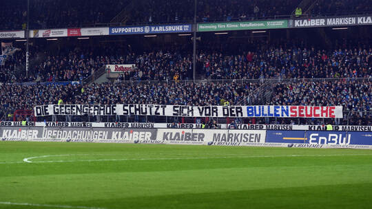Vermutlich ist diese Entscheidung auch die Antwort auf einen neuen Maßnahmenkatalog des Vereins, der am Freitag veröffentlicht wurde. Darin distanziert sich der KSC unter anderem von beleidigenden Schriftbannern aus dem RB Leipzig-Spiel am vergangenen Montag. Der Verein verhängt aus diesem Grund ein Bannerverbot für die kommenden drei Spiele.