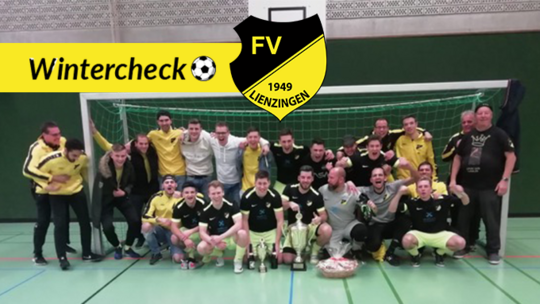 Siegerfoto vom Hallenstadtpokal Mühlacker 2019. Die erste Mannschaft des FV Lienzingen steht in der Kreisklasse A1 derzeit auf dem 3. Platz.