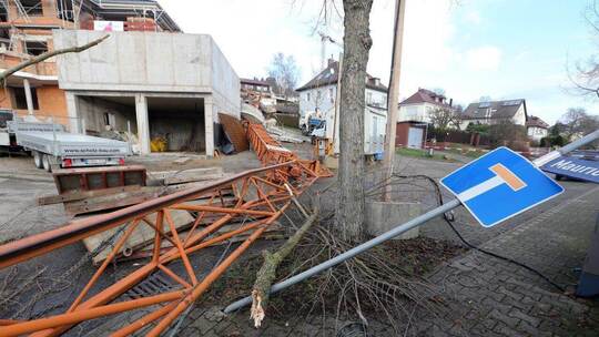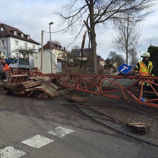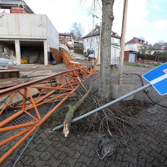 Pforzheim: Baukran stürzt auf Straße