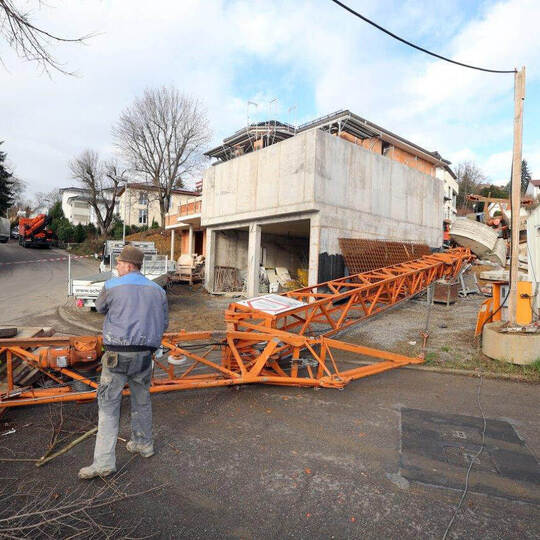 Baukran stürzt auf Rohbau und verursacht 500.000 Euro Schaden