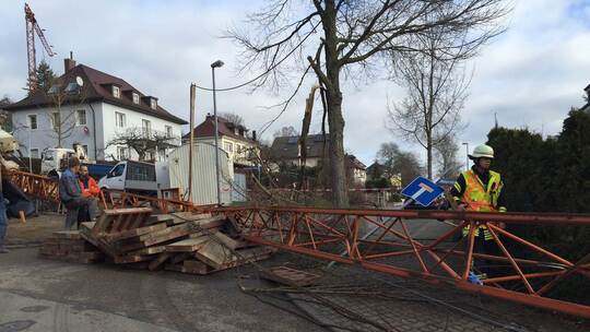 Baukran stürzt im Maihäden auf Straße - Auto beschädigt