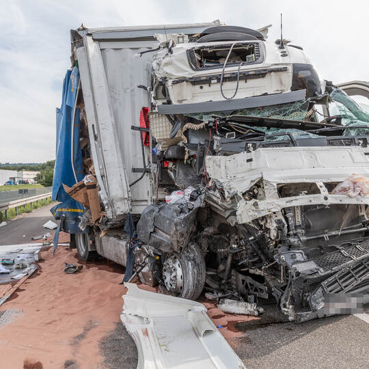LKW-Fahrer kollidiert mit zwei Sattelzügen - Langer Stau auf A5
