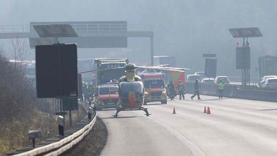 VideoRettungshubschrauber im Einsatz: Zwei Schwerverletzte nach Unfall mit mehreren Fahrzeugen auf der A8 bei Pforzheim-Süd