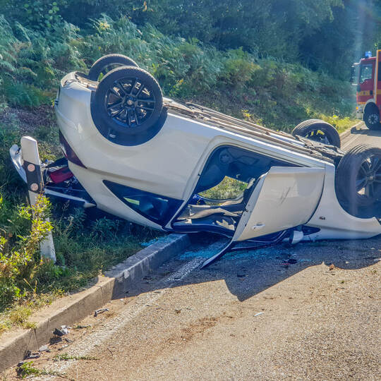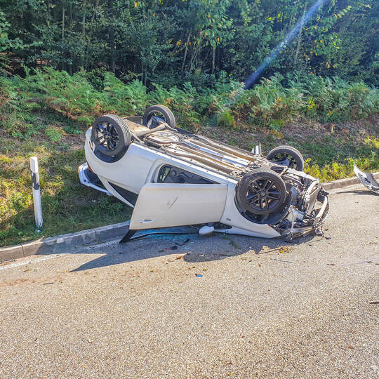 Opel überschlägt sich - Fahrer wird eingeschlossen und muss von Feuerwehr befreit werden