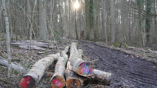 Was bedeuten die Zeichen auf gefällten Bäumen im Wald?