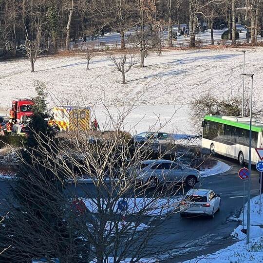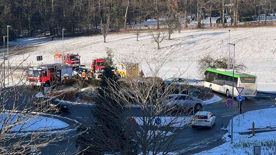 Unfall im Kreisverkehr: Bus und Auto kollidieren in Schwann