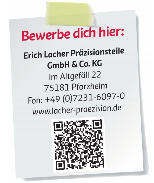 Die Ausbildung zum Industriemechaniker dauert dreieinhalb Jahre und findet dual statt. Theorie wird in der Betriebsschule vermittelt, praktisches Wissen im Betrieb. Bei Lacher gibt es eine eigene Lehrwerkstatt und qualifizierte Ausbilder.