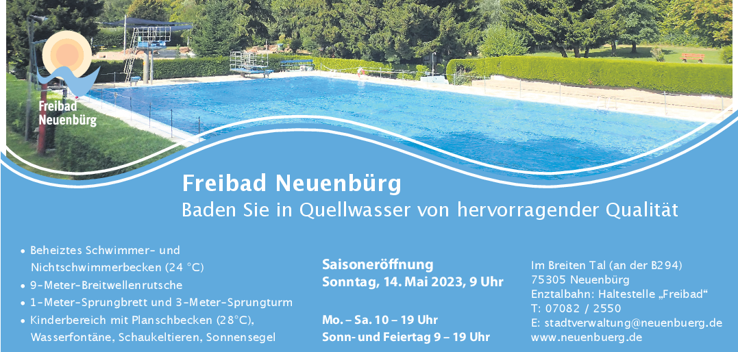 Die Macher in den zahlreichen Freibädern der Region sind jedenfalls schon seit Wochen emsig dabei, ihre Bäder für die hoffentlich zahlreichen Besucher wieder in Szene zu setzen und für einen wohltuenden, erholsamen Freibadbesuch vorzubereiten. Bereits an diesem Wochenende fällt der Startschuss in dem einen oder anderen Bad.