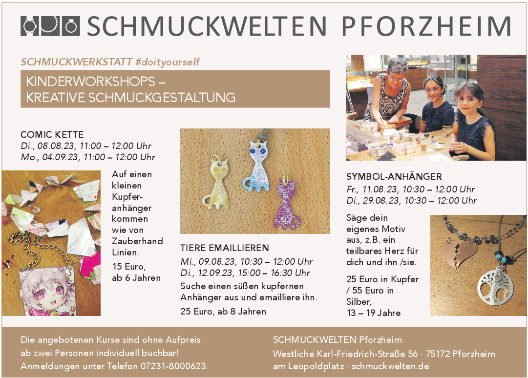 Workshops für Kinder-Arbeiten am Goldschmiedetisch - Schmuck mit Spaß