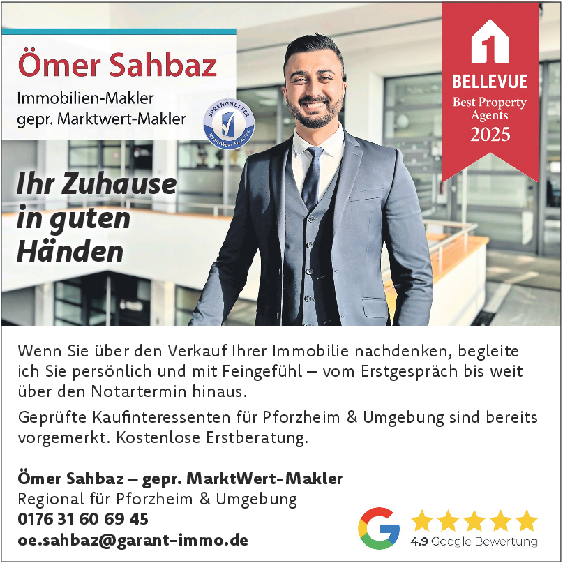 Gleichzeitig treibt die wachsende Mietnachfrage die Attraktivität des Marktes für Kapitalanleger – höhere Mietrenditen machen Bestandsimmobilien zu begehrten Anlageschätzen. Dieses Zusammenspiel aus begrenztem Wohnraum und steigender Mietnachfrage eröffnet Pforzheim und dem Enzkreis ein ? nachhaltiges Wert- und Renditepotenzial.