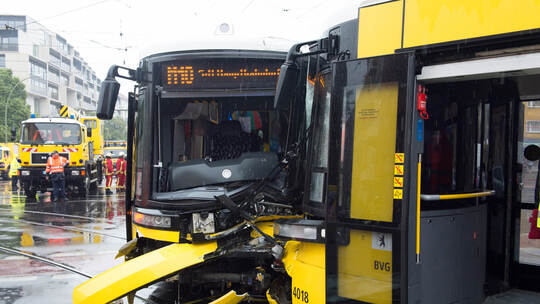 Am Mittag waren zwei Bahnen der Linie M10 im Ortsteil Prenzlauer Berg zusammengestoßen, die eigentlich aneinander vorbeifahren sollten. Das sagte ein Sprecher der Berliner Verkehrsbetriebe (BVG). Zur Ursache konnte er noch keine Angaben machen. Gründe könnten eine falsch gestellte Weiche oder etwas im Gleisbett sein.