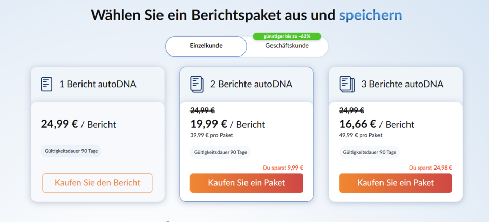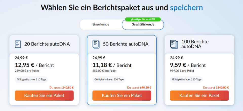 autoDNA-Berichtspakete: für wen, wie sie funktionieren, welche Rabatte