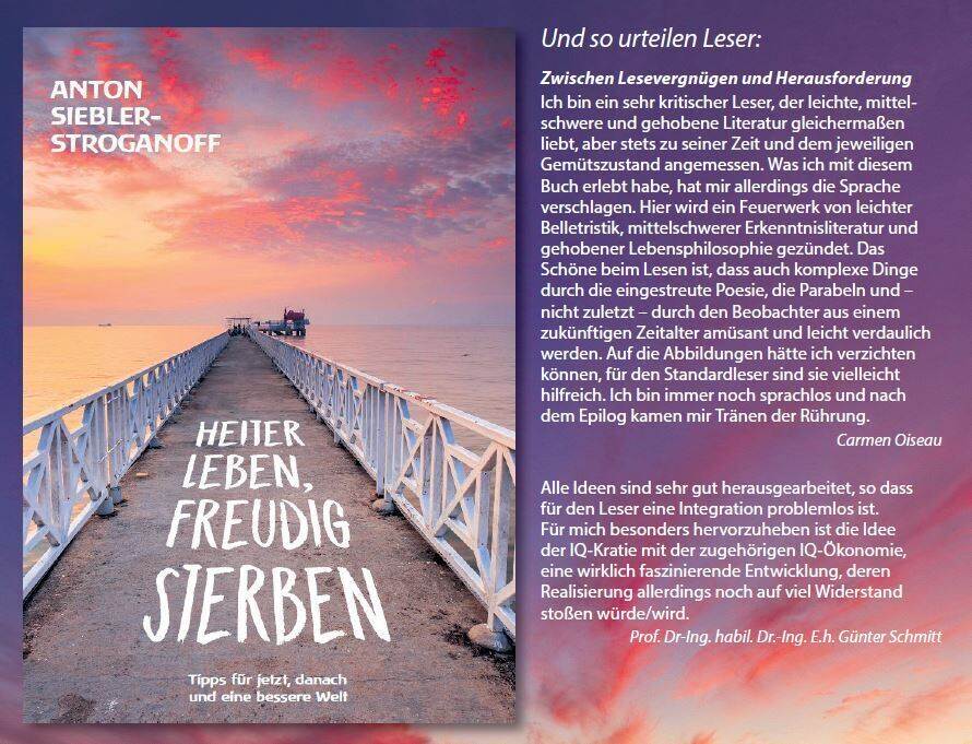 Mit Sicherheit und irgendwann mein Exitus. Aber vielleicht konnte ich mit HEITER LEBEN, FREUDIG STERBEN – Tipps für jetzt, danach und eine bessere Welt doch etwas zum Guten bewirken, … das reicht mir.