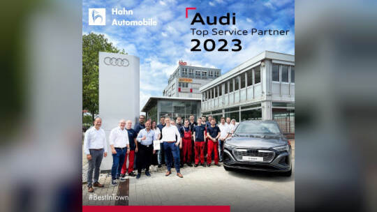 Die Audi AG zeichnet das Team von Hahn Automobile in Pforzheim erneut zum „Audi Top Service Partner 2023“ für herausragenden Service aus.