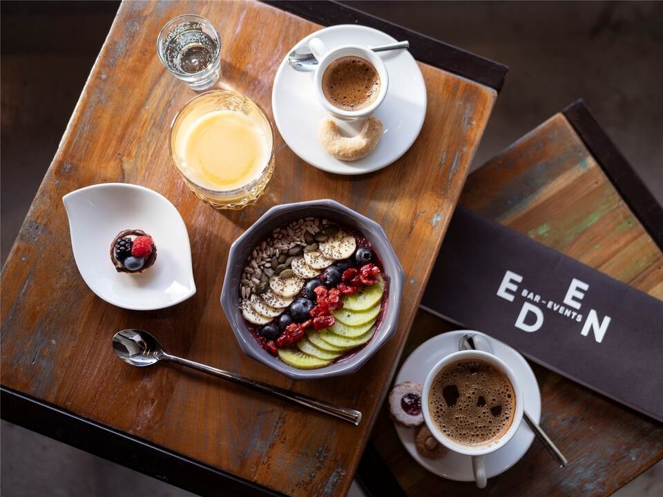 Natürlich ist allen Vieren bewusst, dass man sich die gastronomische Expertise noch erarbeiten muss, aber das Eden-Konzept sei ohnehin so ausgelegt, dass man sich weiterentwickeln könne. „Natürlich wollen wir Abwechselung. Diese ergibt sich aber auch daraus, weil wir ständig am Konzept arbeiten wollen“, sagt Alexander Bader. Die erste Neuerung wurde bereits realisiert: Ab sofort gibt es Frühstück am Vormittag und zum Abend hin diverse Snacks. Das liegt nahe, hat man doch schließlich mit Janis Wiskandt einen Fachmann aus dem Bäcker-Handwerk in den eigenen Reihen.