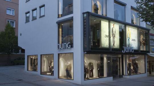 Die zweite JUNG-Inhabergeneration mit Beatrix und Reinhard Jung hatte das 1934 gegründete Unternehmen weiterentwickelt und Ende der 80er-Jahre Mode für Frauen ins Programm aufgenommen. Später wurde diese dann in einem eigenen Laden präsentiert, nur wenige Meter vom Stammhaus entfernt. Dieser zweite JUNG-Standort für Frauenmode an der Lammstraße ist nun Geschichte. Alisa und Karsten Jung, die dritte Unternehmergeneration, werden nach den Umbauarbeiten die zeitgemäße Mode für moderne, mitten im Leben stehende Frauen auf zwei Etagen im Stammhaus präsentieren.