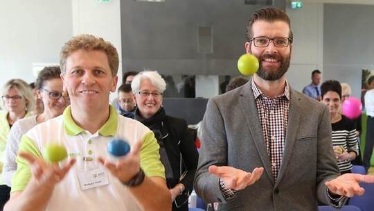 Wie erfolgreich, aber auch spaßig die Gesundheit während der Arbeit verbessert werden kann, zeigten abschließend Gesundheitsmanagement-Berater Markus Fritsch von der Barmer und der schlanke TV-Ernährungsexperte Sven Bach (SWR-Sendung „Kaffee oder Tee“), der einst 141 Kilo wog. Die Erkenntnis Thomas Satinskys, einiges gelernt zu haben und in die Führungsrunden mitzunehmen, galt für viele Teilnehmer.