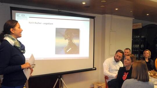 Pforzheim. Müssles Vinothek gab dem jüngsten IHK-Businesstalk den gediegenen Rahmen. Die Veranstaltung für Unternehmer stieß auf großes Interesse: 35 Teilnehmer wollten sich Karin Bachers Impulsvortrag zu Fragen des Selbstmanagements auf keinen Fall entgehen lassen. „Muss ich mich denn klonen?“, lautete die Überschrift des Referats von Karin Bacher. Auf Nachfrage teilte sie mit, dies entspräche exakt dem Gefühl, welches sie die ersten drei Jahre ihrer Selbstständigkeit permanent begleitet habe. Das war 2013.