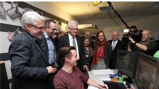 Und der zeigt sich angetan. Auch davon, dass Gieske und sein Compagnon Andraschko in Pforzheim das freie WLAN mitinitiiert und eine IT-Community aufgebaut haben, in der, so Gieske, Mitglieder der Branche an einem Strang zögen und anpackten, statt lange zu diskutieren. „Klingt nach Silicon Valley“, wirft Kretschmann ein. Gieske freut’s und er fügt hinzu, mittlerweile habe sich in Pforzheim „ein kleines IT-Cluster“ gebildet, das mehr Arbeitsplätze als in der traditionellen Schmuckindustrie biete.