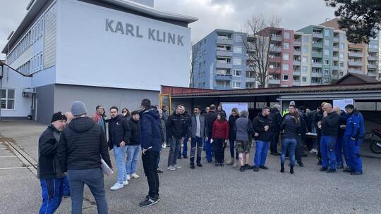 Niefern. Die Stimmung ist recht gut: Die IG Metall hatte am Mittwoch zu einer aktiven Mittagspause auf dem Werkgelände von Karl Klink in Niefern eingeladen. Es gibt ein Vesper und Gespräche mit den Beschäftigten. Mit dem Einstieg von CE Capital Partners aus Hamburg ist das Insolvenzgespenst vom Fabrikgelände verschwunden. Die Beteiligungsgesellschaft hatte im September den Geschäftsbetrieb des weltweit tätigen Maschinenbauers übernommen. Insolvenzverwalter Philipp Grub konnte damit zumindest 100 der knapp 180 Arbeitsplätze retten. Einige langjährige Klink-Mitarbeiter wurden auch von lokalen Mitbewerbern abgeworben, heißt es.