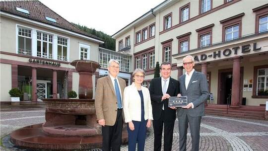 „Sie verstehen ihre Gäste zu begeistern“, meinte Dehoga-Vorsitzender Fritz Engelhardt und lobte die Investoren-Familien Scheidtweiler und Kohm für ihr unternehmerisches Talent, ein solches Potenzial zu erkennen und wieder zum Leben zu erwecken. Dafür gab‘s auch gleich den Ritterschlag mit der Auszeichnungs-Plakette „4 Sterne Superior“. Und weil es bei Scheidtweilers vielfältigen Aktivitäten „kein Haus ohne Segen“ gibt, waren Pforzheims Dekan Bernhard Ihle und der evangelische Pfarrer von Zavelstein, Gottfried Bührer, zur Stelle, um eine Segnung vorzunehmen.
