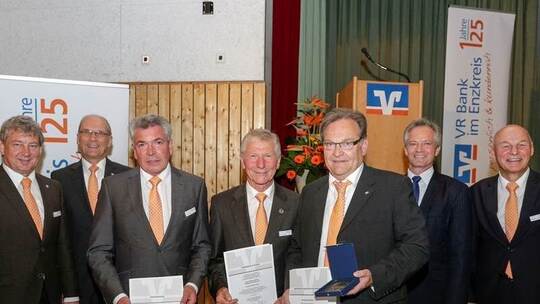 „Wir blicken in diesem Jahr auf unsere 125-jährige Geschichte zurück“, sagte Klemens Schork, Vorstandsvorsitzender der VR-Bank im Enzkreis bei der Vertreterversammlung in der Monbachhalle in Neuhausen. „Am 24. November 1891 haben 70 Enzberger Bürger den Darlehenskassen-Verein Enzberg gegründet.“