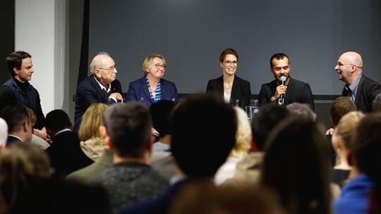 Wohin fließt das Geld in der Goldstadt? Unter anderem darüber informierte im voll besetzten Vortragsraum des Pforzheimer Kreativzentrums EMMA ein Podium, das neben Wissenschaftsministerin Theresia Bauer (Bündnis 90/Die Grünen) besetzt war mit Rafy Ahmed, Geschäftsführer und Creative Director der Morati GmbH (Birkenfeld), Karl Schlecht von der gleichnamigen Stiftung (Aichtal bei Stuttgart), Professorin Andrea Wechsler, Prorektorin und Mitbegründerin des Gründerwerks der Hochschule Pforzheim, sowie Sascha Rudolph, Vorsitzender und Initiator des Vereins Entrepreneurs Pforzheim. OB Peter Boch begrüßte die Runde und die Gäste.