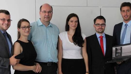 Der Vorlesungsplan berücksichtigte bisher schon, dass Aurelia Bischoff und ihre Kommilitonen an bestimmten Tagen auch in ihren jeweiligen Betrieben arbeiten können. Seit Oktober 2015 setzt der Studiengang Unternehmertum noch eins drauf: Alternativ zum klassischen Studium mit Anwesenheit in der Fächerstadt kann nun die Online-Variante gewählt werden. Soll heißen, die Vorlesungen finden übers Internet statt. So kann beispielsweise ein Professor von seinem Büro in Berlin den Studentinnen und Studenten, die zu Hause oder in der Firma am Computer sitzen, den Lehrstoff vermitteln. Die oft mühsame Anfahrt nach Karlsruhe entfällt. Bei einer Lehr-Pressekonferenz – die Pressearbeit ist Bestandteil des Studiums – präsentierten Aurelia Bischoff und vier weitere Kommilitonen vor Medienvertretern von Print und Funk eine Zwischenbilanz des webbasierten Studiengangs.